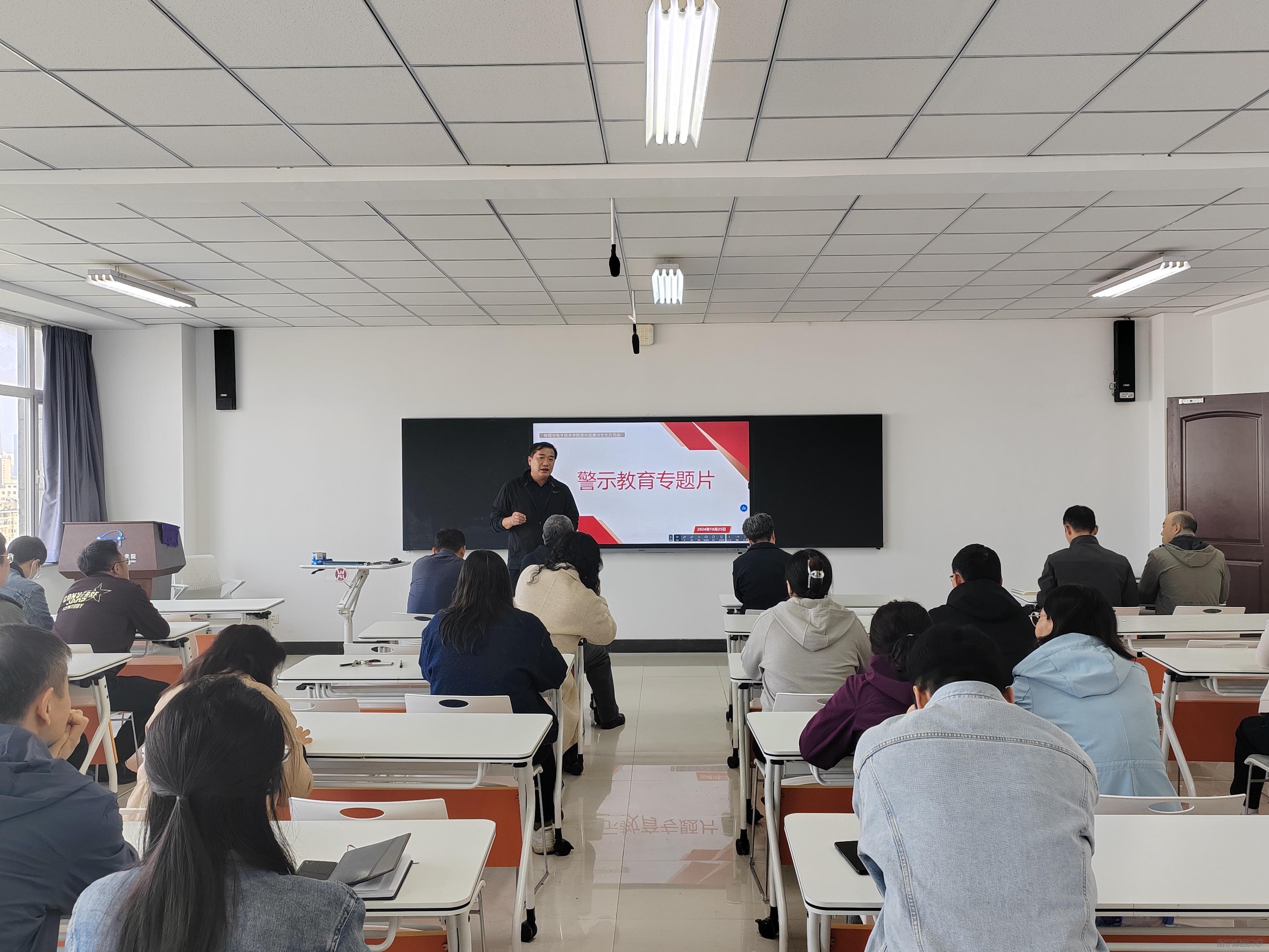 落实“七个一”系列活动之开展警示教育活动。学院纪委书记雷鸣主持警示教育学习,组织学院全体教师共同观看了违纪违法典型案例的警示教育视频,使党员干部知敬畏、存戒惧、守底线。