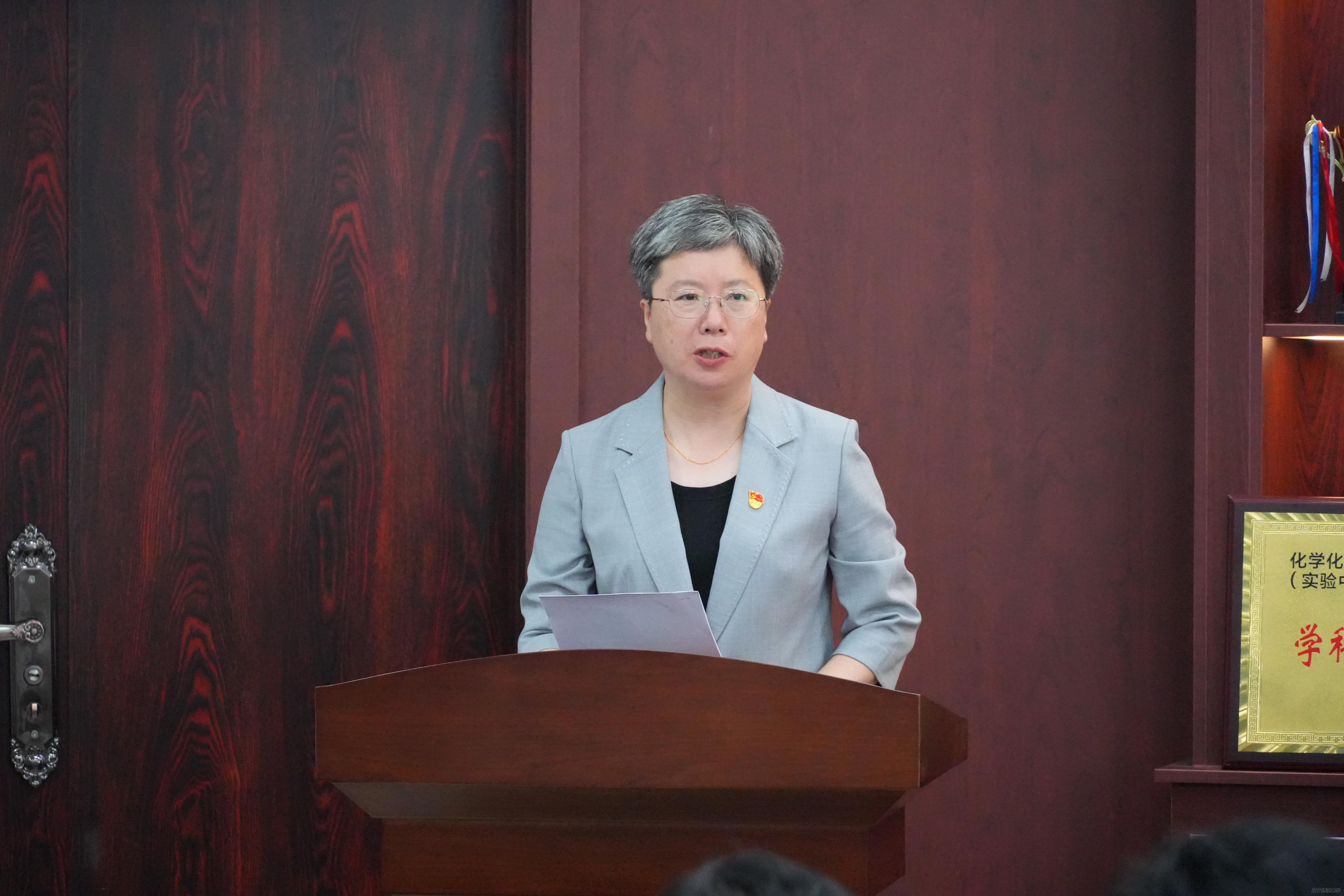 随后,学院党委书记曲建辉对活动进行总结。她首先代表学院党委向全体党员致以节日问候,对新党员加入党组织表示热烈欢迎,并向受表彰的“党员先锋”致以诚挚祝贺。同时她借此活动向学院全体党员提出三点期望:一是深入学习中央八项规定精神,筑牢作风建设根基,以优良作风带动校风、教风、学风建设;二是弘扬科学家精神,扛起科技创新使命,发挥学科优势,把个人科研理想融入国家战略需求,为科技自立自强贡献力量;三是全面落实学校党委各项部署要求,凝聚发展共识、汇聚奋进力量。希望全体师生党员充分发挥先锋模范作用,做教书育人的表率、做科研创新的尖兵、做服务师生的榜样,以实干精神和优异成绩推动学院“十四五”规划目标实现和“十五五”规划谋篇开局,在实现全面振兴新突破中锐意进取,在推动学院事业发展中贡献力量!