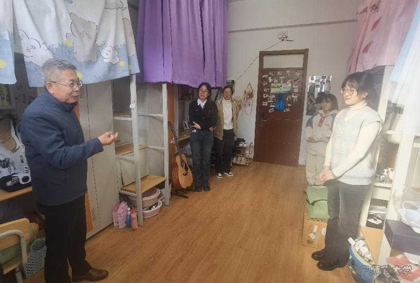 党课结束后,关部长走访我院研究生寝室,深入“一站式”学生社区开展工作,调研学生生活、学习、就业方面的困难和疑惑,以及需要协调解决的问题。关部长实地查看了学生寝室住宿条件,了解学生生活方面是否有需要解决的问题并与学生交流专业学习情况,进而给出学业和职业生涯发展规划方面的建议,同时鼓励大家加强锻炼、增强体魄,实现全面发展。