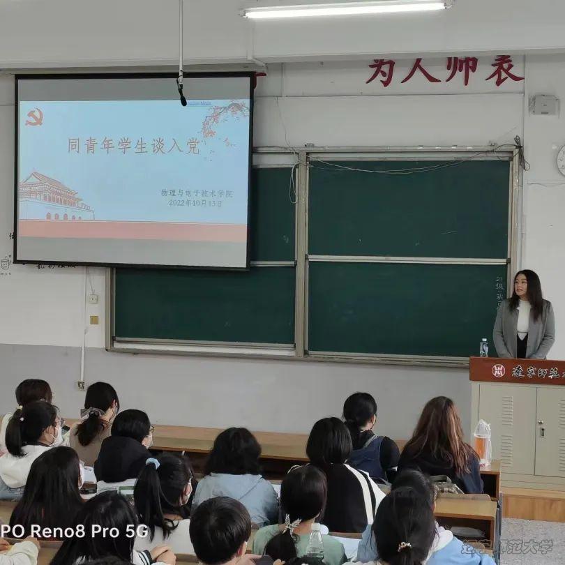 在党的二十大即将召开之际,为引导新生积极向党组织靠拢,激发理论学习热情,我院于10月13日中午在外语楼第七合堂教室开展了对2022级本科新生的入党启蒙教育。学院党委书记曲建辉讲授了《同青年大学生谈入党》的专题课程,学院团委书记张倩主持本次活动。