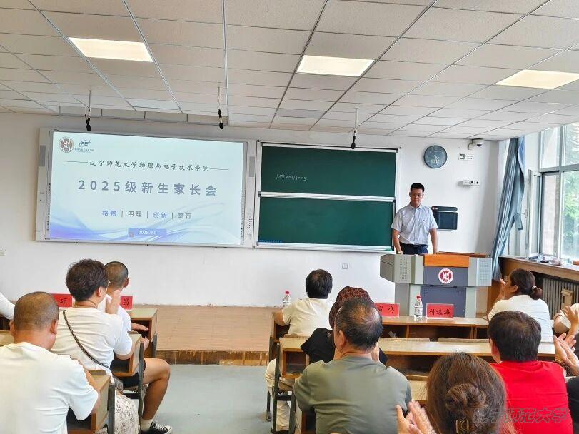 为了加强家长对学校的了解,促进家校共育。2025年9月6日14:00,辽宁师范大学物理与电子技术学院2025级新生家长会于文科楼教室201召开。我院院长孙景昌老师、副院长陈建兴老师、副院长杨硕老师、2025级本科生辅导员付逸海老师以及2025级本科生家长出席本次会议。本次会议由党委副书记兼2025级本科生辅导员雷鸣老师主持。